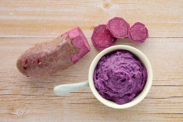 자색 참마는 항산화제와 비타민 A와 C의 좋은 공급원이며, 여러분이 이러한 비타민의 일일 섭취량에 도달하도록 도와줍니다.