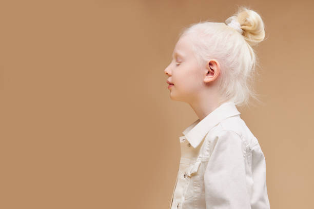 눈 색깔도 나이에 따라 변할 수 있으며 매우 밝은 파란색에서 갈색까지 다양합니다. 홍채의 멜라닌 수치가 낮으면 눈이 약간 반투명해 보일 수 있으며 특정 조명에서는 빛이 눈 뒤쪽의 망막에서 반사되어 붉거나 분홍색으로 보일 수 있습니다. 색소가 부족하면 홍채가 햇빛을 완전히 차단하지 못하므로 사람은 빛에 민감합니다. 의사는 이것을 감광성이라고 부릅니다.
